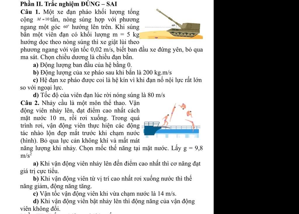 Động lượng xe pháo sau khi bắn: `p=mv=10000*0.02=200kg*m//s`