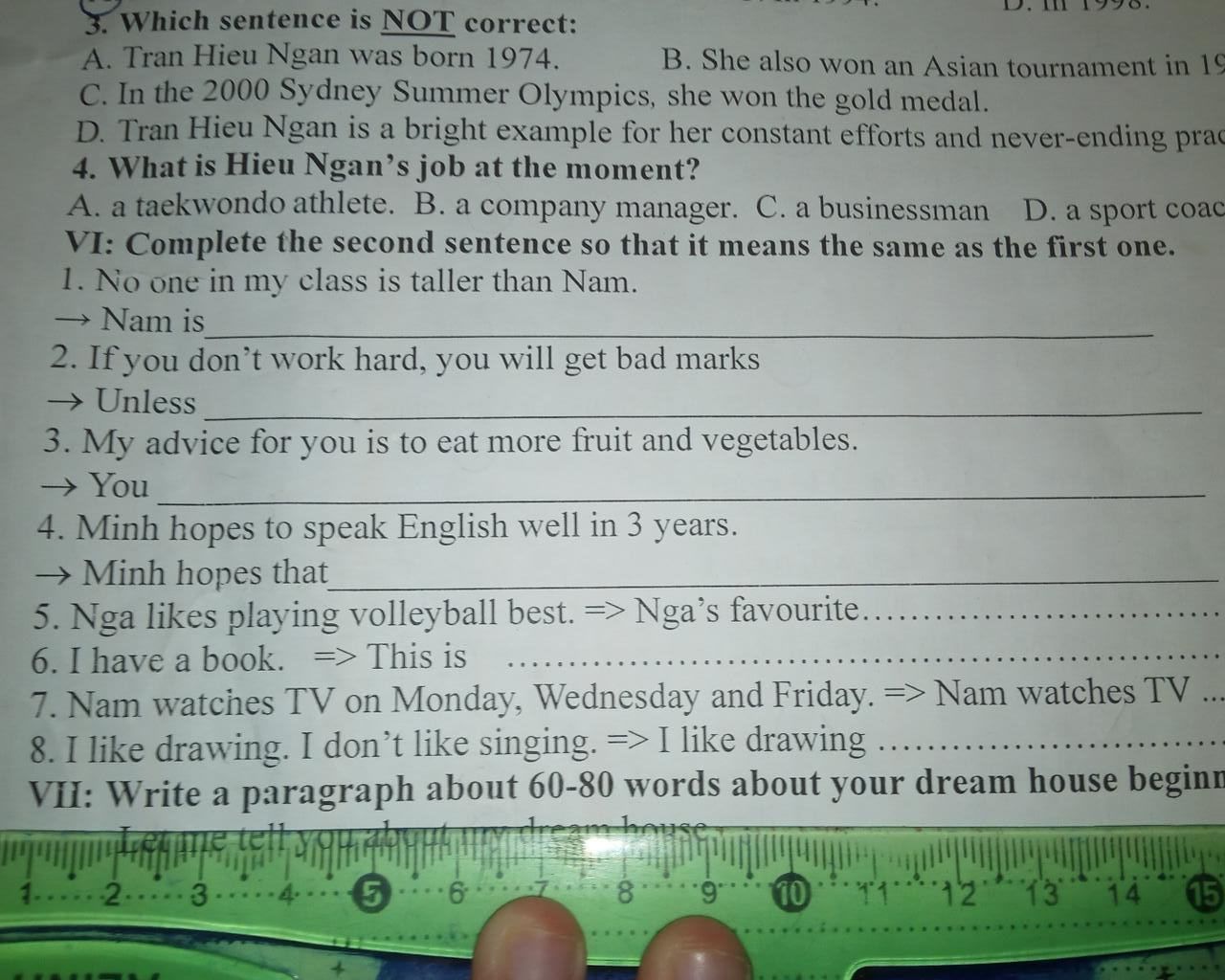 7. Nam watches TV on Monday, Wednesday and Friday.