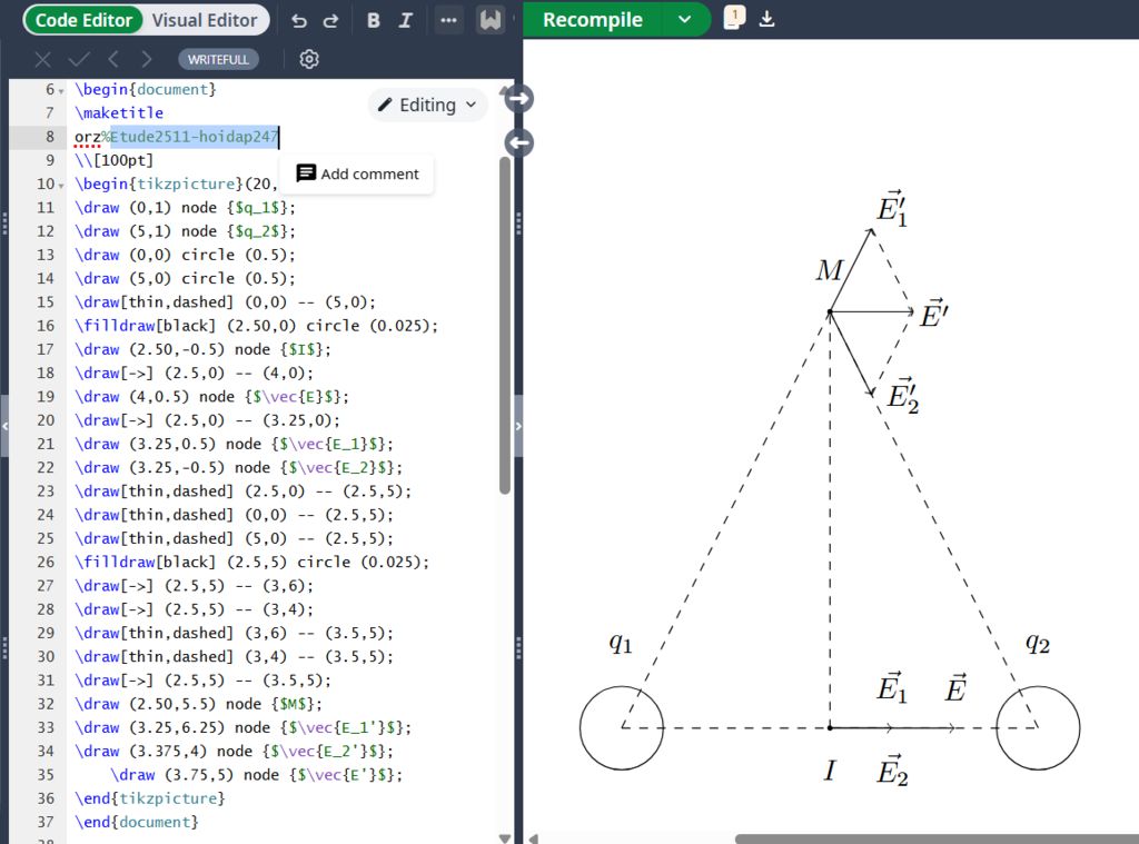 Vì $q_1q_2<0$ nên $\vec{E_1}\uparrow\uparrow\vec{E_2}$