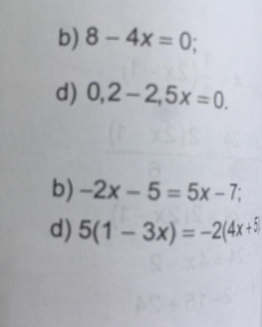 d) 0,2 - 2,5x = 0