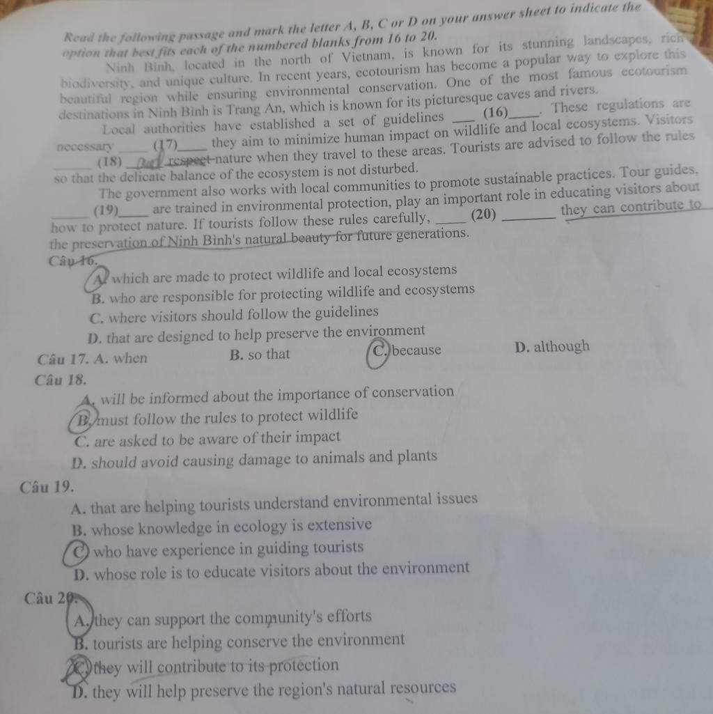 Câu 16: `A.` which are made to protect wildlife and local ecosystems