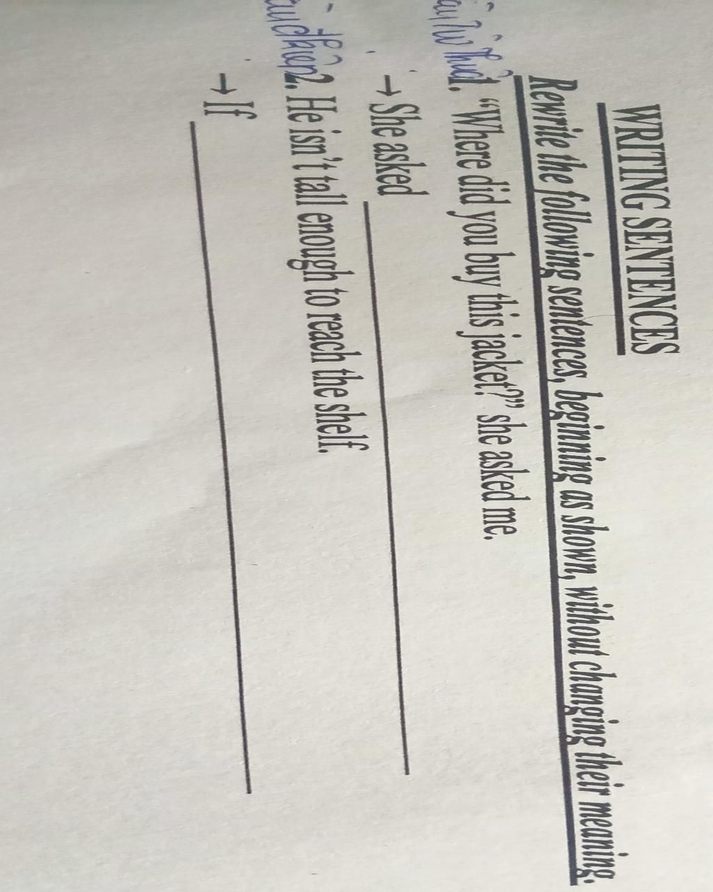 1. She asked me where I had bought that jacket.