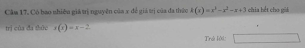 Vậy có `6` giá trị nguyên của `x` để `k(x)` chia hết cho `s(x)`
