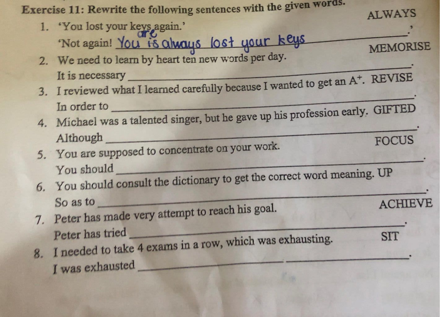 `2`.It is necessary to memorise ten new words per day.