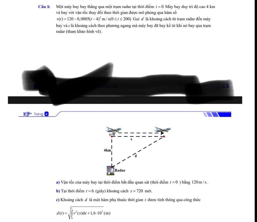 d.Sau $3$ phút $=180$ giây thì khoảng cách từ radar đến máy bay là: