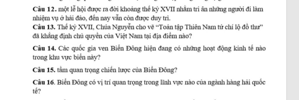 Câu 15: Tầm quan trọng chiến lược của Biển Đông: