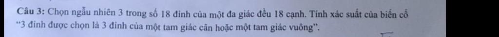 Gọi `A:`"`3` đỉnh được chọn là tam giác cân"