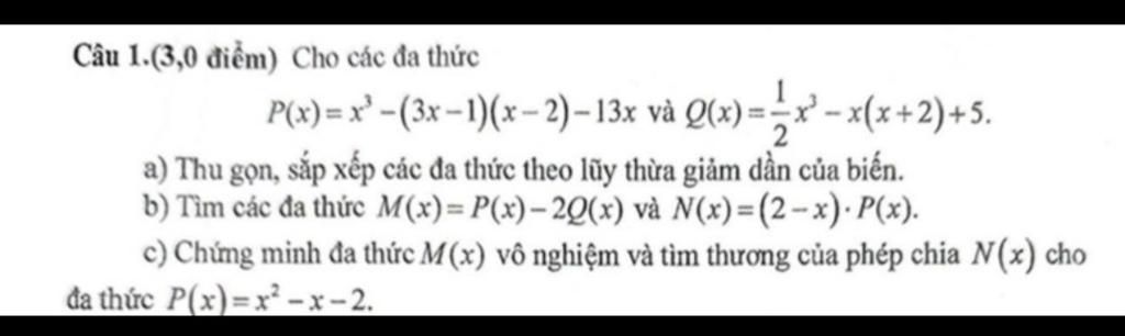c) Chứng minh đa thức M(x) vô nghiệm và tìm thương của phép chia N(x) cho