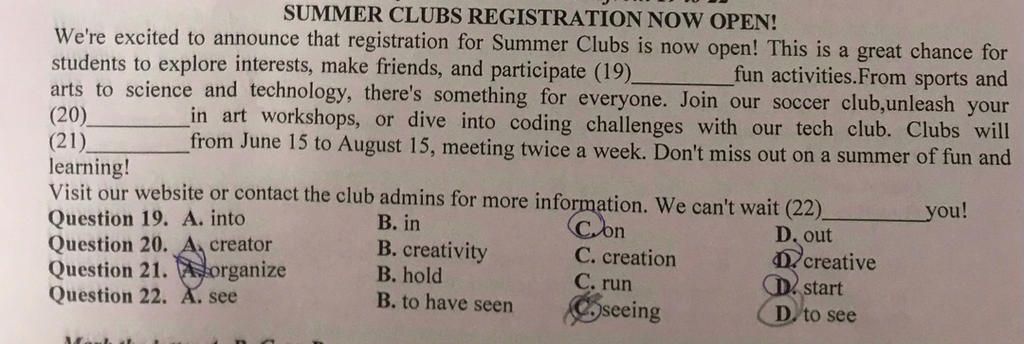 ` @ ` Tạm dịch : Các câu lạc bộ sẽ hoạt động từ ngày 15 tháng 6 đến ngày 15 tháng 8, họp hai lần một tuần.