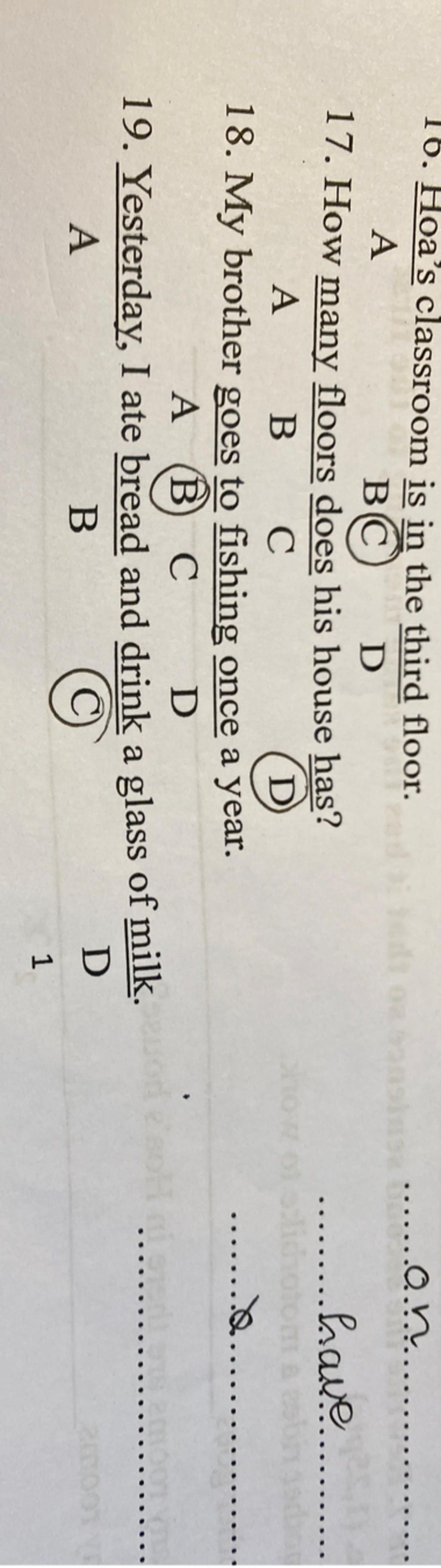 `19.` Yesterday, I ate bread and drink a glass of milk.