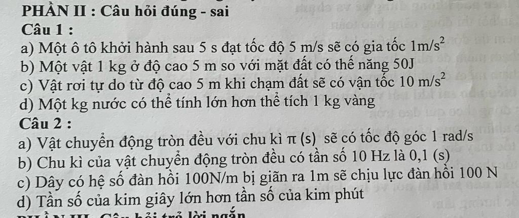 Thế năng:` U = mgh=* 10 * 5 = 50(J)`