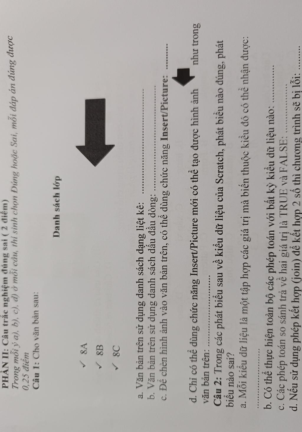 `->` Đúng vì văn bản này liệt kê các lớp 8A,8B,8C theo dạng danh sách .