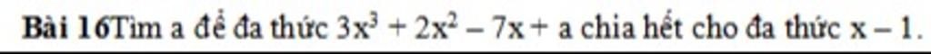 Vậy `a=2` để đa thức `3x^3 +2x^2 -7x+a` chia hết cho đa thức `x-1`