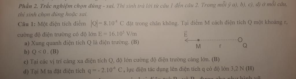 Tại `M,` vecto cường độ điện trường hướng ra xa Q nên `Q > 0`.