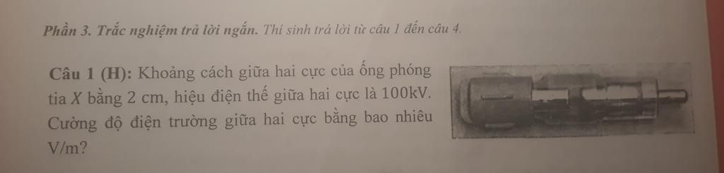 Cường độ điện trường giữa hai cực của ống phóng là:
