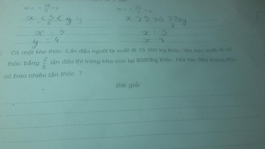 Lần sau người ta chuyển đi số thóc là: