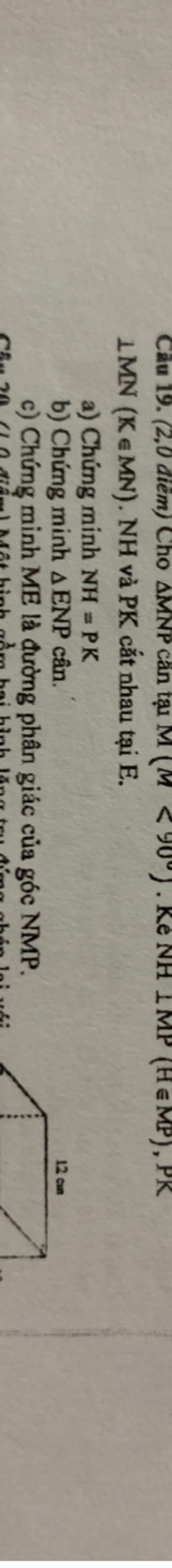 Câu 19. (2,0 điểm) Cho AMNP căn tại M