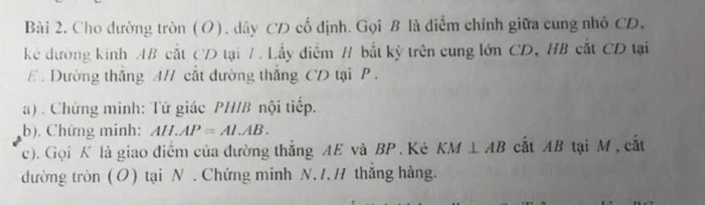Bài 2. Cho đường tròn (O). dây CD cố định. Gọi B là điểm chính giữa cung nhỏ CD,