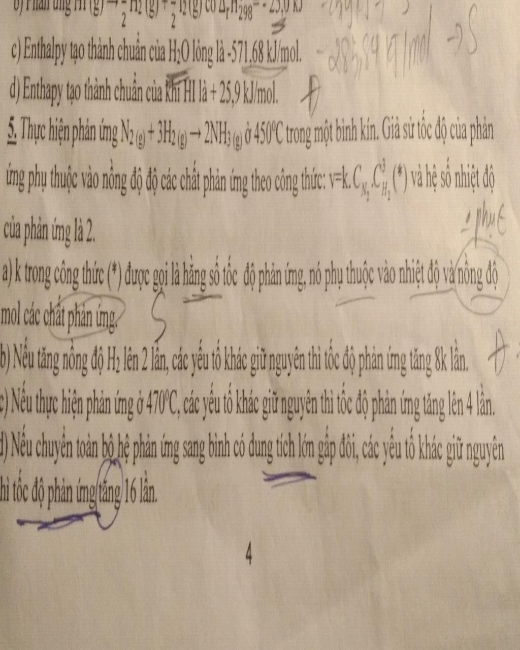`-` Hằng số tốc độ phản ứng `(k)`chỉ phụ thuộc vào nhiệt độ và bản chất của phản ứng, không phụ thuộc vào nồng độ các chất phản ứng.