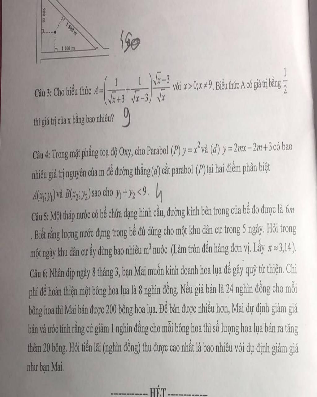 Câu 4: Trong mặt phẳng toạ độ Oxy, cho Parabol (P) y=x^và (d) y = 2mx – 2m + 3 có bao