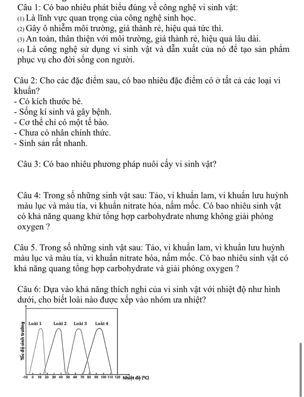 Câu 3: Có 2 phương pháp nuôi cấy vi sinh vật: