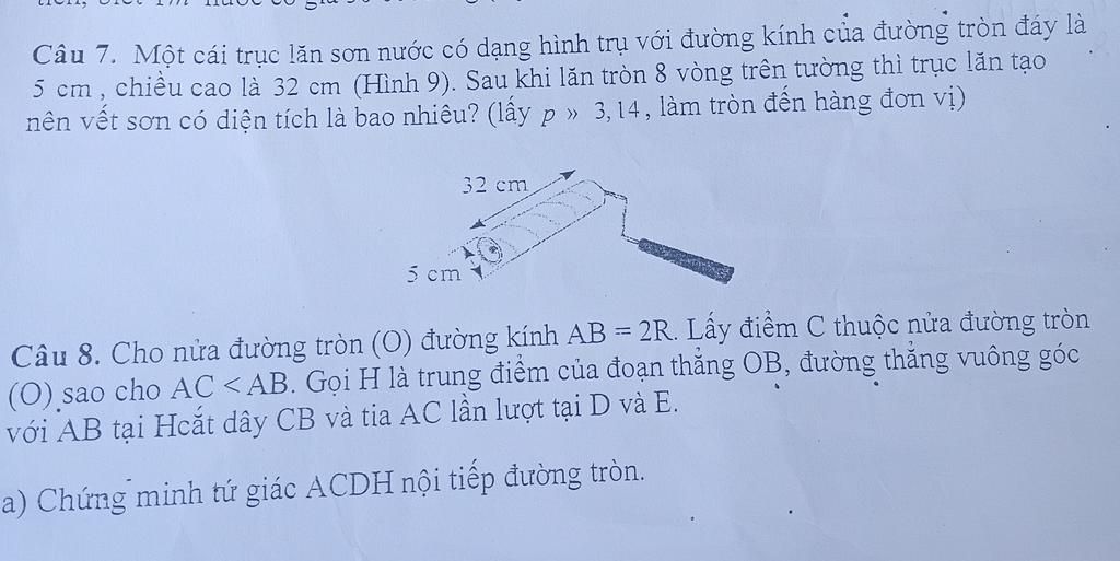 Câu 7. Một cái trục lăn sơn nước có dạng hình trụ với đường kính của đường tròn đáy là