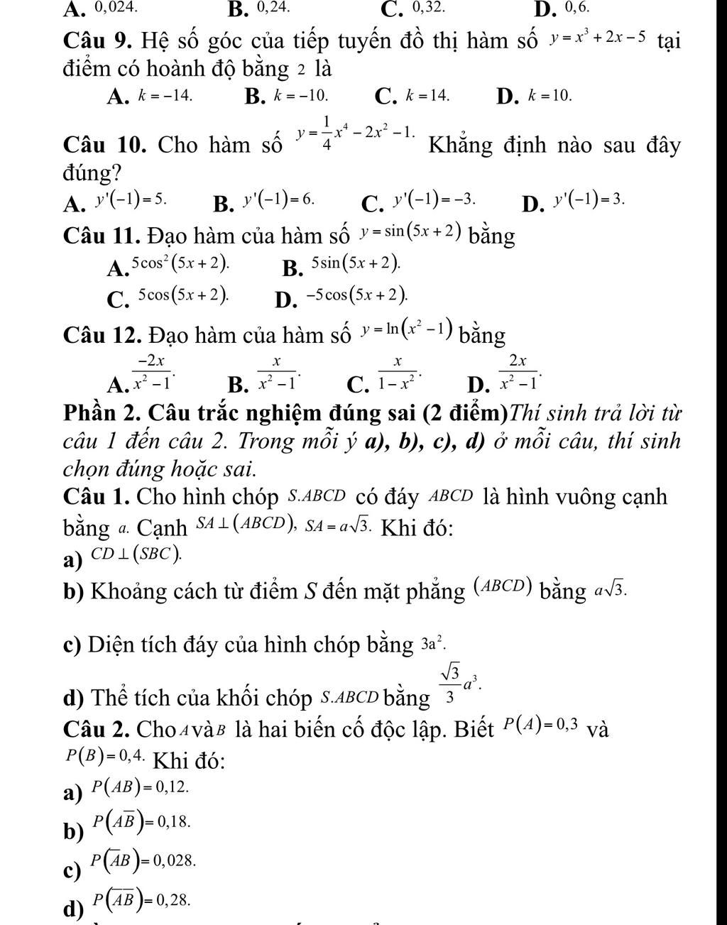 Câu 9. Hệ số góc của tiếp tuyến đồ thị hàm số y=x+2x-5 tại