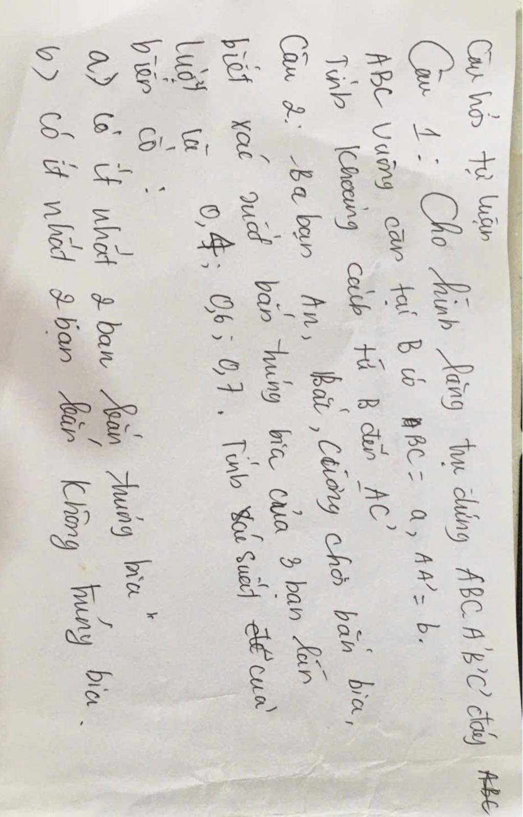 ABC Vuing car tai Bio ABC = a, AA = b.