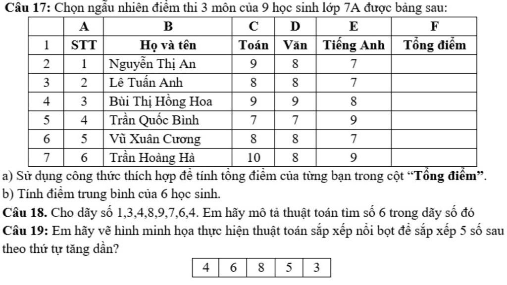 `-` Để tính điểm trung bình 6 bạn.
