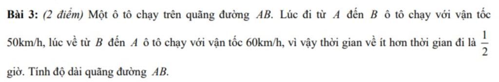 Gọi thời gian đi từ `A` đến `B` là `x` (giờ) `(x >1/2)`