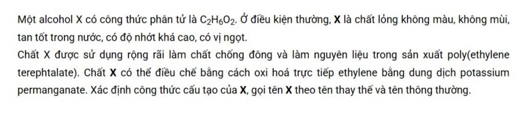 Ethylene glycol `(C_2H_6O_2)` có hai nhóm `-OH,` trong khi ethanol `(C_2H_5OH)` chỉ có một nhóm `-OH`
