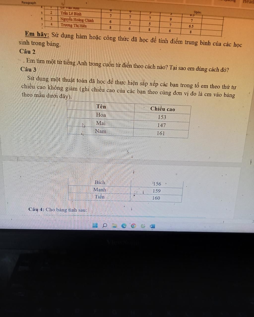 `+`1.Thấp nhất là Mai (147). Sắp xếp: [Mai]