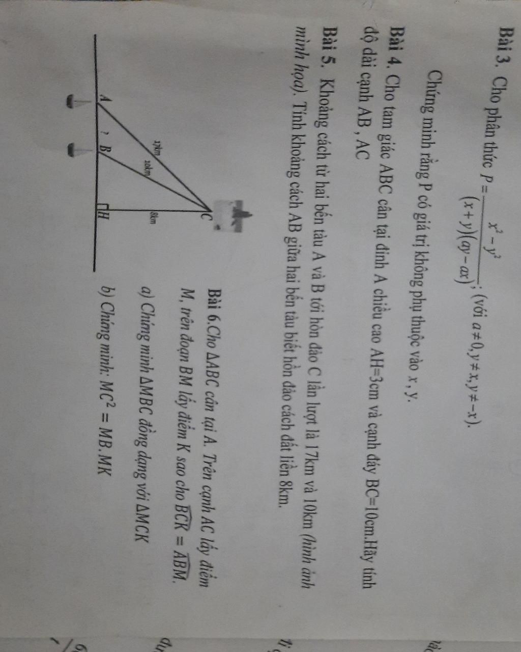 Bài 5. Khoảng cách từ hai bến tàu A và B tới hòn đảo C lần lượt ...