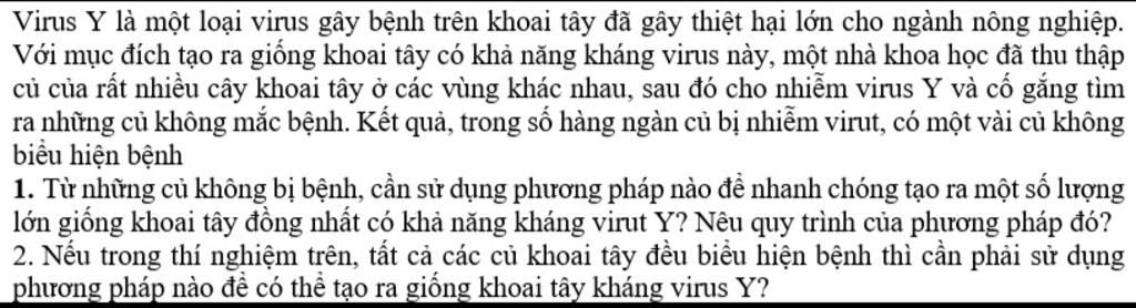 Với mục đích tạo ra giống khoai tây có khả năng kháng virus này, một nhà khoa học đã thu thập