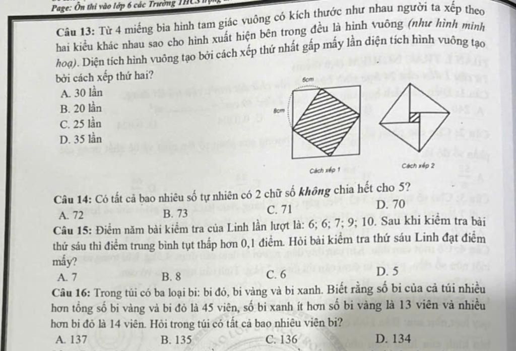 Điểm các lần kiểm tra của Linh: 6, 6, 7, 9, 10, … (có thêm lần thứ 6 chưa biết).