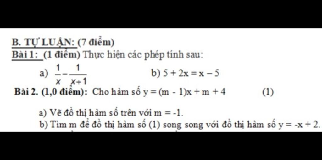 Vậy `m = 0` thì đồ thị hàm số `(1)` song song với đồ thị hàm số `y = -x + 2`