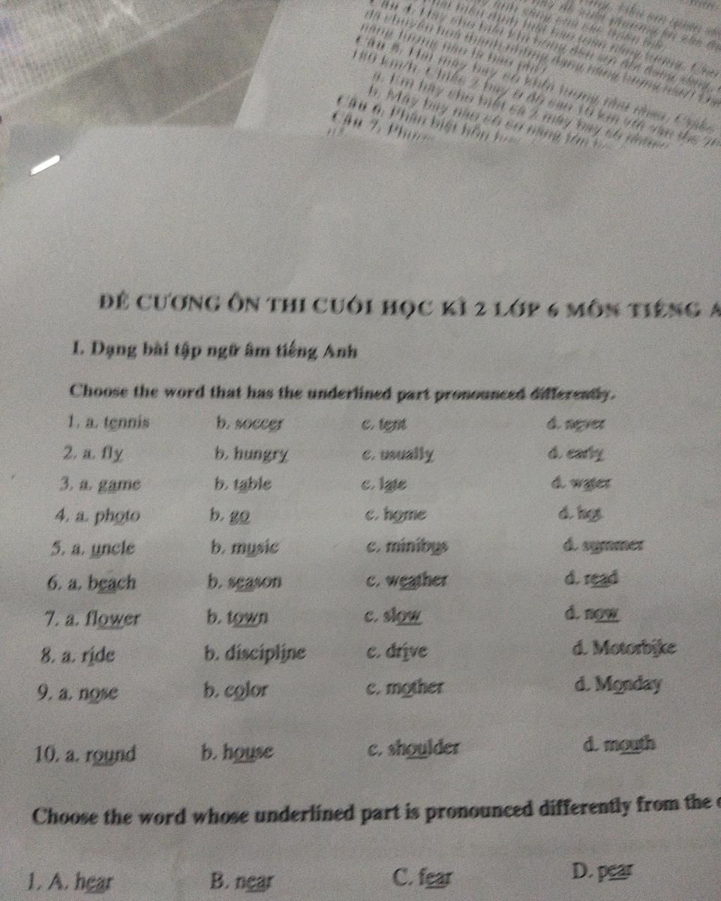 `10. C` (/əʊ/ còn lại là /aʊ/)