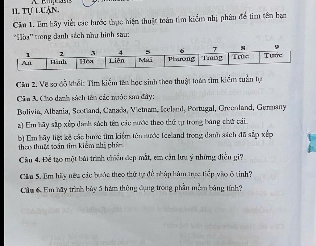 a) Sắp xếp các tên nước theo thứ tự trong bảng chữ cái: