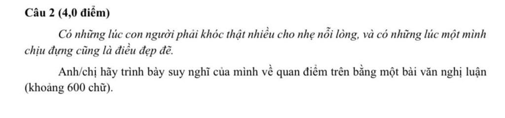 Trước hết, cần hiểu rằng khóc là một phản ứng tâm lý tự nhiên của con người trước nỗi đau, áp lực hoặc những biến động nội tâm lớn. Trái lại, chịu đựng trong im lặng là cách con người chấp nhận nỗi đau, tự mình vượt qua mà không thể hiện ra bên ngoài. Cả hai không phải là sự yếu đuối mà là biểu hiện chân thực của những con người dám đối diện với bản thân. Khóc để nhẹ lòng là cách giải phóng cảm xúc giúp con người bình tâm hơn sau biến cố. Còn chịu đựng là cách tôi luyện nội lực, âm thầm tôi rèn bản lĩnh qua từng vết thương. Như nhà văn Nguyễn Nhật Ánh từng viết: “Khóc không làm ta yếu đuối. Nó chỉ làm ta bớt đơn độc trước nỗi buồn”.