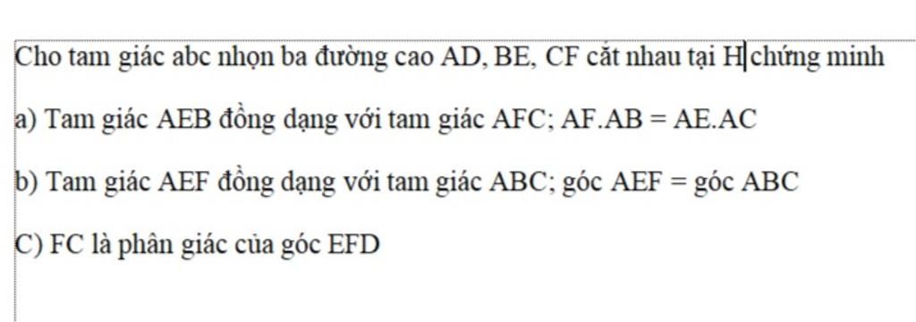 b) Tam giác AEF đồng dạng với tam giác ABC; góc AEF = góc ABC