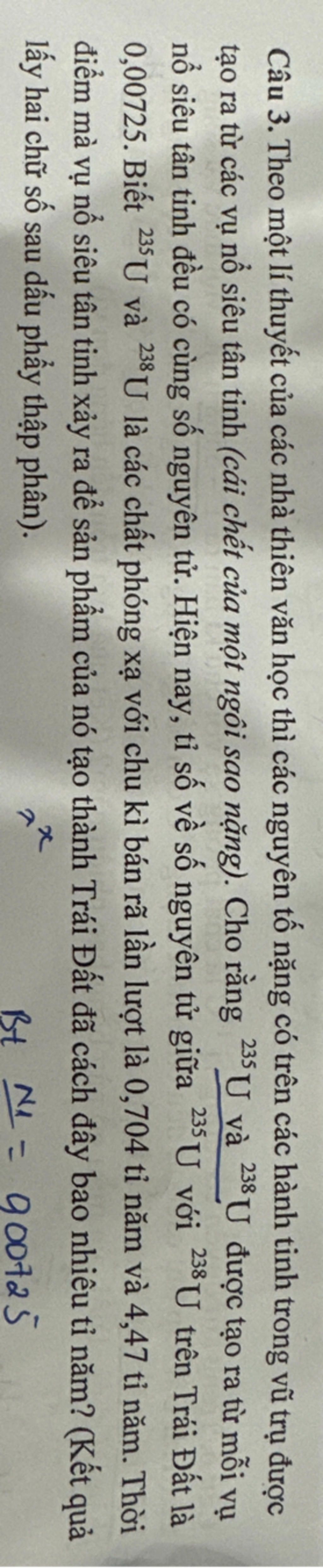 Câu 3. Theo một lí thuyết của các nhà thiên văn học thì các nguyên tố nặng có trên các hành tinh trong vũ trụ được