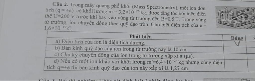Bán kính quỹ đạo với ion `m' = 6,4.10^[-26] (kg)` là: