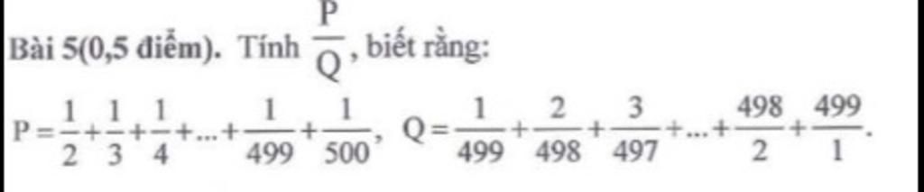 `=> P/Q = (1/2 + 1/3 + ... + 1/500)/(500(1/500 + 1/499 + ... + 1/2))`
