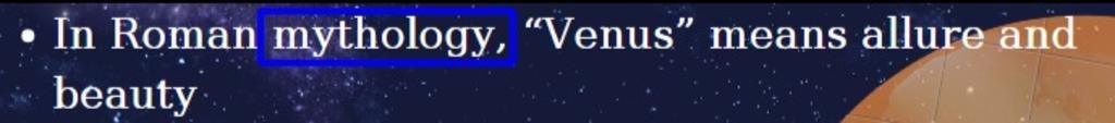 Có nghĩa là :trong thần thoại La Mã, "venus" có nghĩa là sự quyến rũ và vẻ đẹp