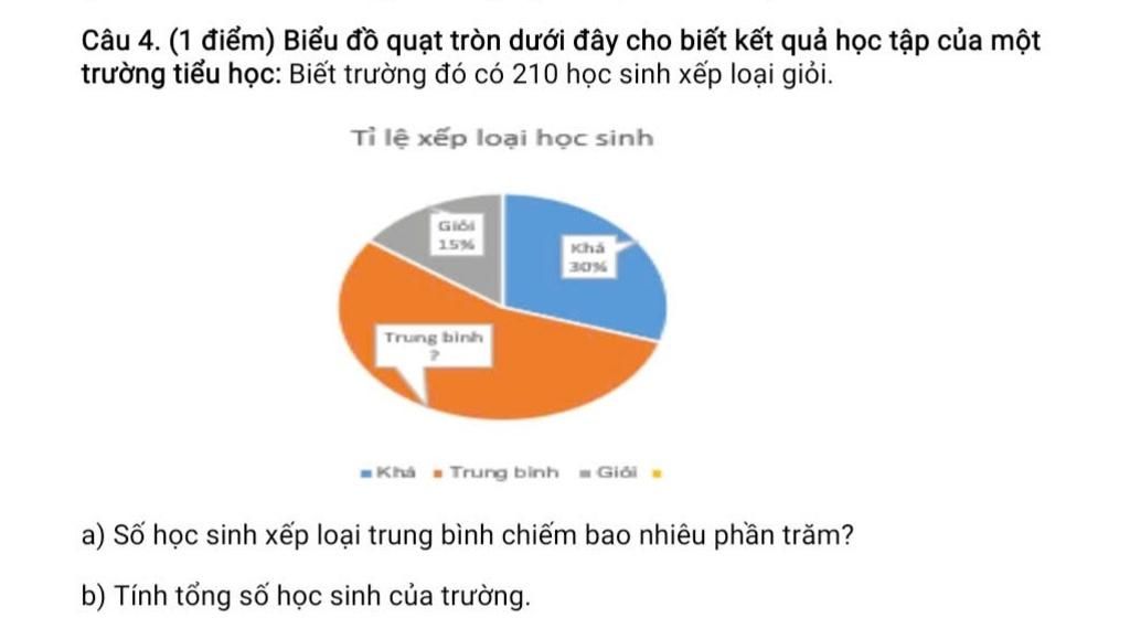`a)` Số học sinh xếp loại trung bình chiếm số phần trăm là :