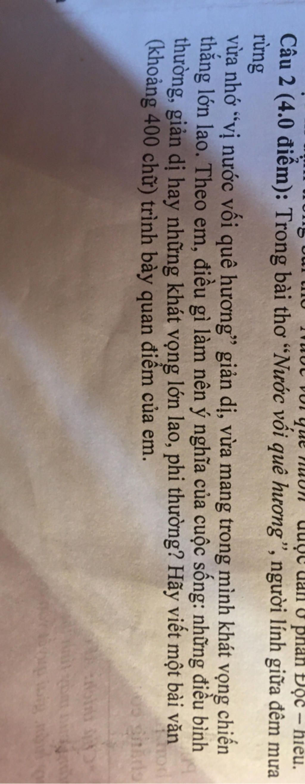 -Ví dụ: Khát vọng chiến thắng của người lính trong bài thơ thể hiện ý chí bảo vệ Tổ quốc, mang lại hòa bình cho dân tộc.