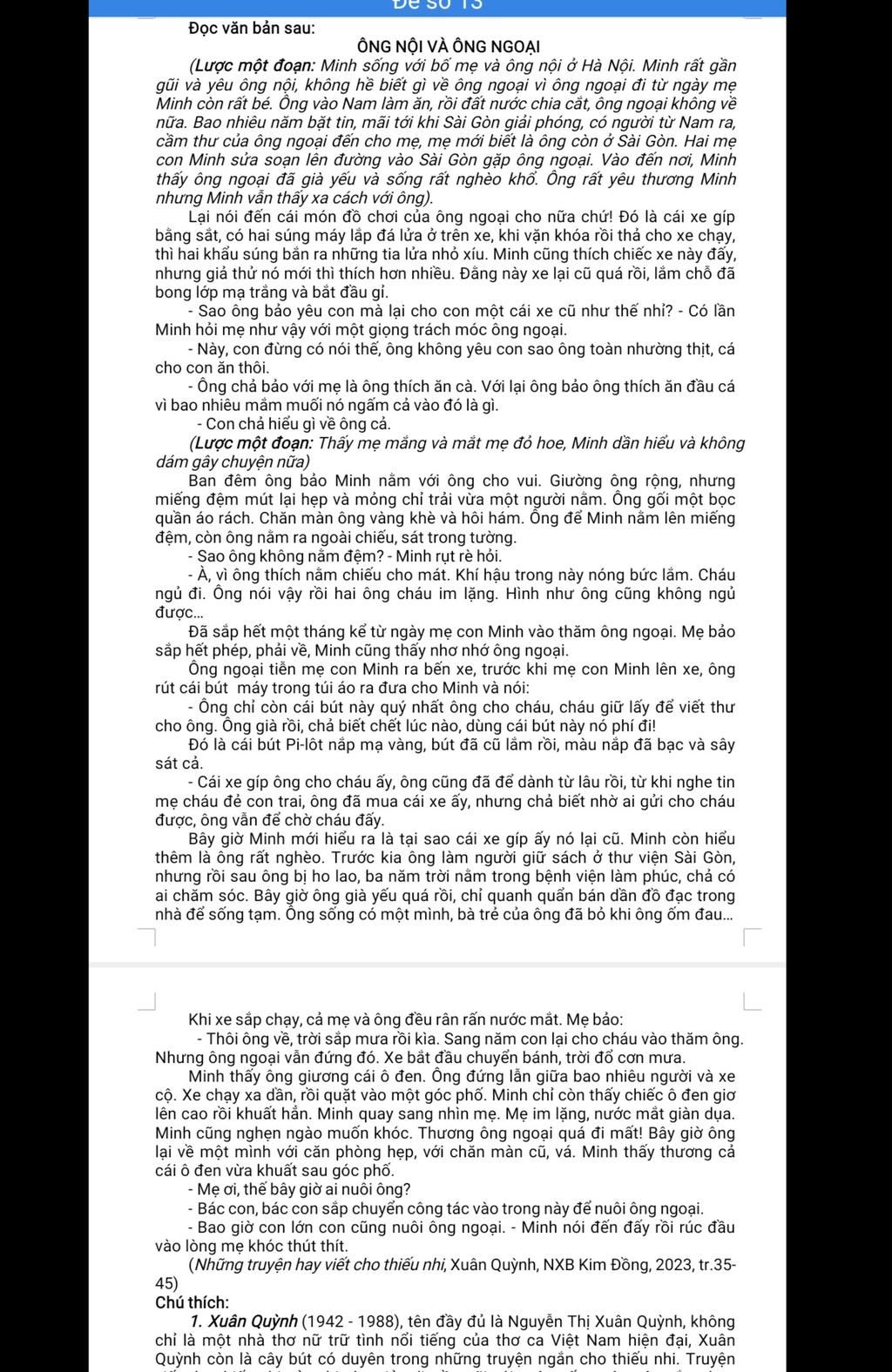 Câu 4 (1.0 điểm). Theo dõi từ đầu văn bản đến cuối văn bản, em thấy thái độ và tình cảm của Minh đối với ông ngoại đã có sự thay đổi như thế nào? Vì sao lại có sự thay đổi như vậy?