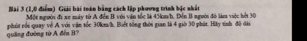 Thời gian đi từ A đến B là: $\frac{x}{45}$ ( h )