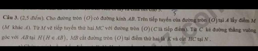 góc với AB tại H(H ∈ AB), MB cắt đường tròn (O) tại điểm thứ hai là K và ...