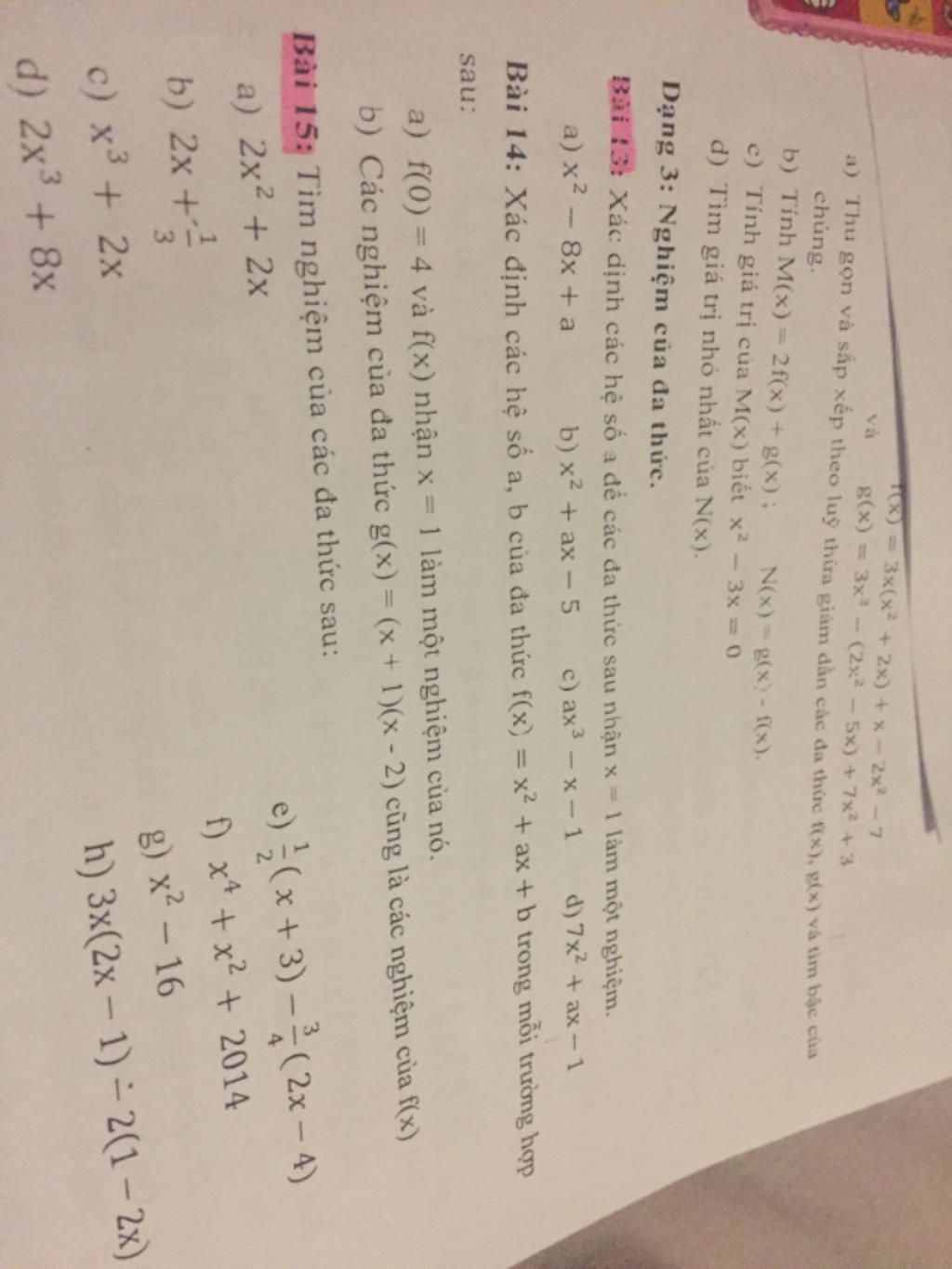 d) x=1 là nghiệm => 7.1^2+a.1-1=0